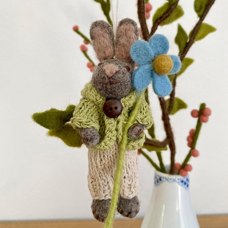 handgefilzter Osterhase Häschen mit Blume -... Osterhase mit Blume (Filz) zum Hinhängen an den Osterstrauch, als Geschenkanhänger, für's Osternest, als Tischdekoration oder einfach als Geschenk für...