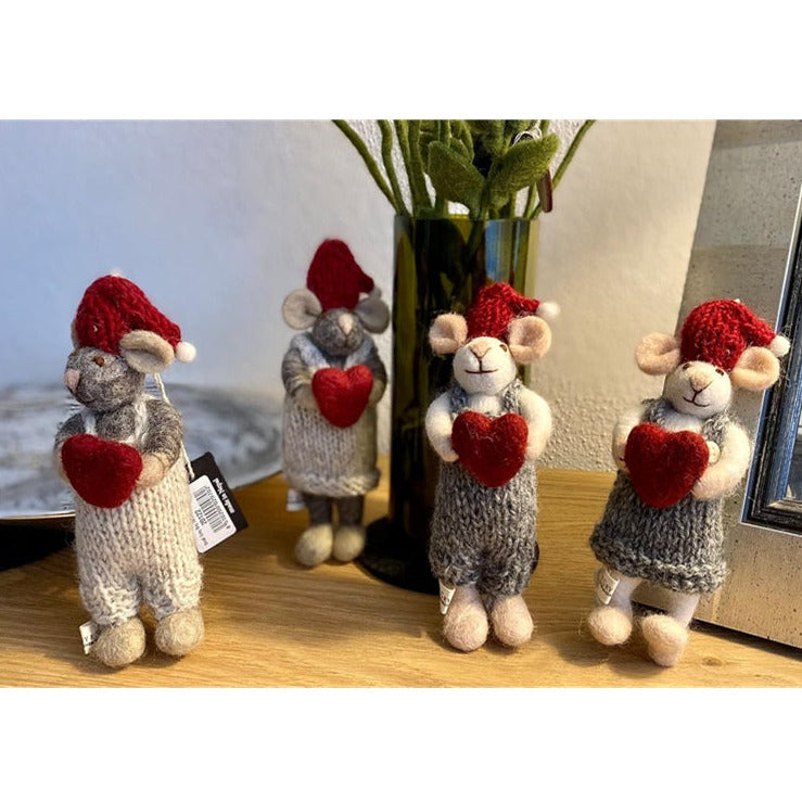Mäuse Weihnachtsmäuse aus Filz (12-14cm) -... Diese etwas größeren Mäuse verzaubern Sie mit verschiedenen kleinen Ornamenten zum Hinhängen an den Weihnachtsbaum, als Geschenkanhänger, zum Muttertag /...