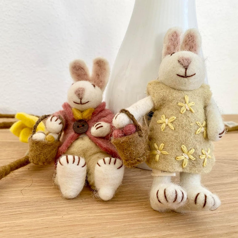 Weißer Osterhase Filz mit Anzug oder... Dieser weiße Hase von Gry & Sif bringt den Frühling direkt in Ihr Zuhause! Mit einem Körbchen bepackt macht er...