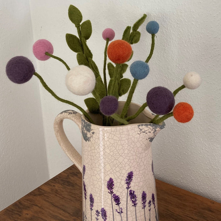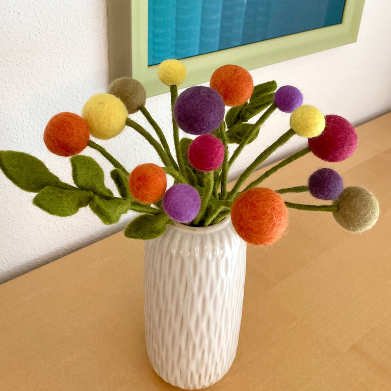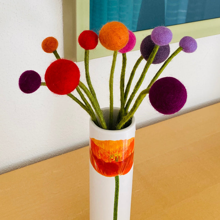 Filzblumen Kugelblumen (1 Stück) Ø3cm -... Filz-Kugelblumen in unterschiedlichen Farben einzeln - 31cm lang Filzblume mit biegsamen Stiel Farben Blütenkugel: Ø 3cm Länge je Blume: ca....