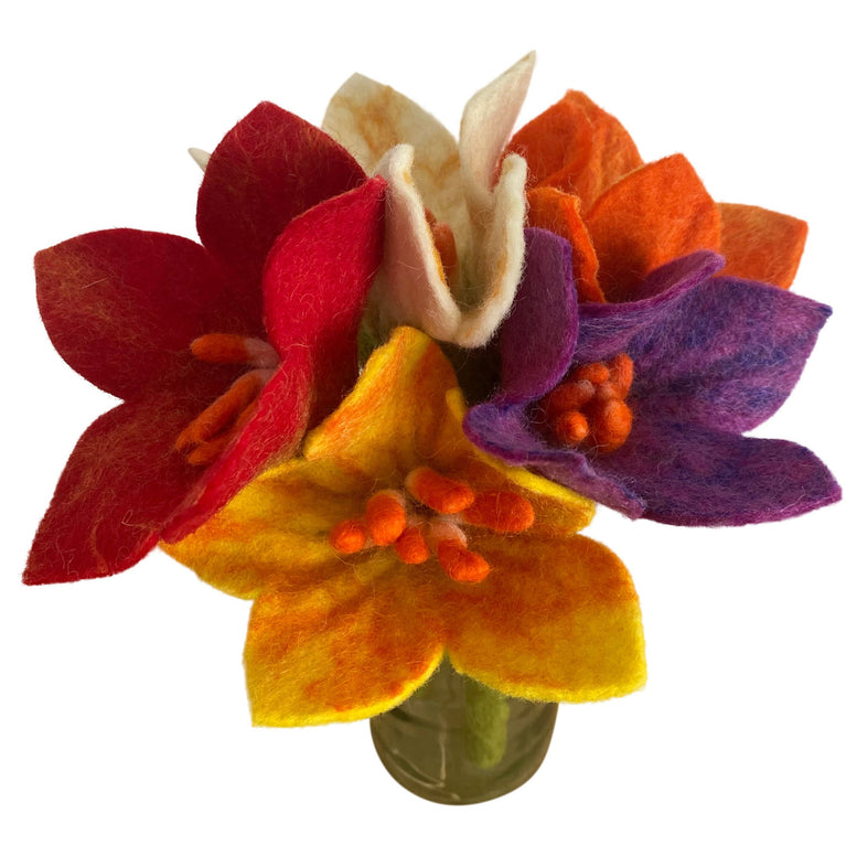 Blumenstrauß "Abendrot" Filzblumen 10 Stück -... wunderschöne handgemachte Filzblumen-Sträuße - 100 % reine Schurwolle aus Neuseeland Set mit insgesamt 10 Filzblumen (5 größere / 5 kleinere) ...