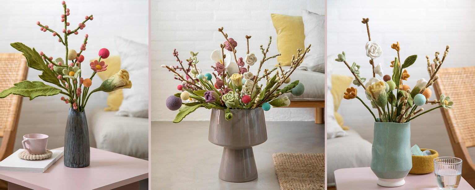 Die Filzblumen des dänischen Unternehmens Gry & Sif faszinieren mit ihren lebendigen Farben und ihrem einzigartigen Design.Diese reizenden Filzprodukte werden in Nepal in hoher Qualität von Hand gefertigt, daher ist jedes Stück ein Unikat.Im Jahr 2009 erhielt Gry & Sif die Fair-Trade-Zertifizierung. -