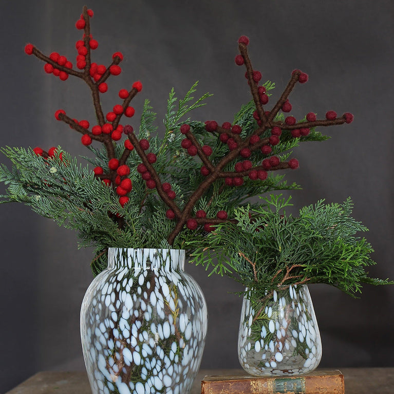 Beerenzweig aus Filz, Zweig mit Beeren... Wird die Jahreszeit dunkler, schätzen wir besonders das letzte Grün, das die Natur noch zeigt. Es ist zum Brauch geworden...