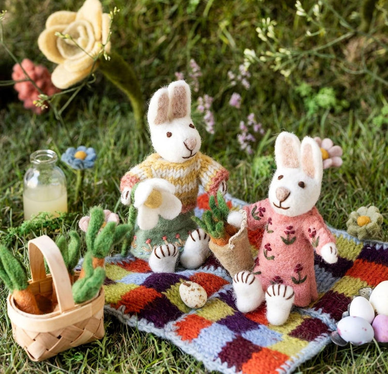 Weißer Osterhase Filz mit Anzug oder... Dieser weiße Hase von Gry & Sif bringt den Frühling direkt in Ihr Zuhause! Mit einem Körbchen bepackt macht er...