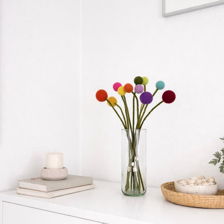 Filzblumen Kugelblumen (1 Stück) Ø3cm -... Filz-Kugelblumen in unterschiedlichen Farben einzeln - 31cm lang Filzblume mit biegsamen Stiel Farben Blütenkugel: Ø 3cm Länge je Blume: ca....