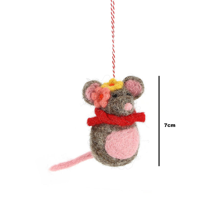 Anhänger Maus Rosi mit Blumenhut, Filz, Ostern-Deko - Anhänger (Globo Fair Trade)