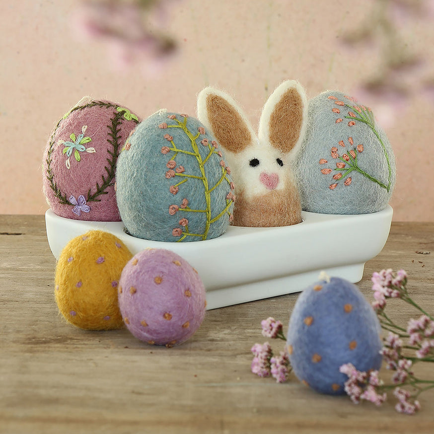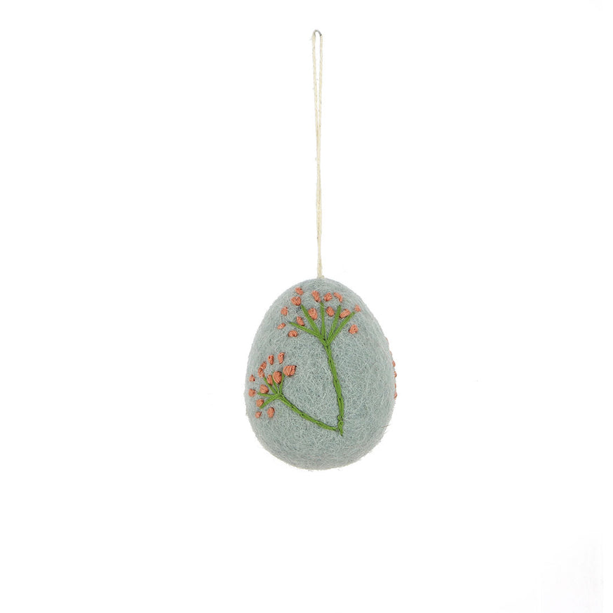 große Ostereier (1 Stück / 6cm) mit gestickten Blumen, Filz, Ostern-Deko - Anhänger (Globo Fair Trade)