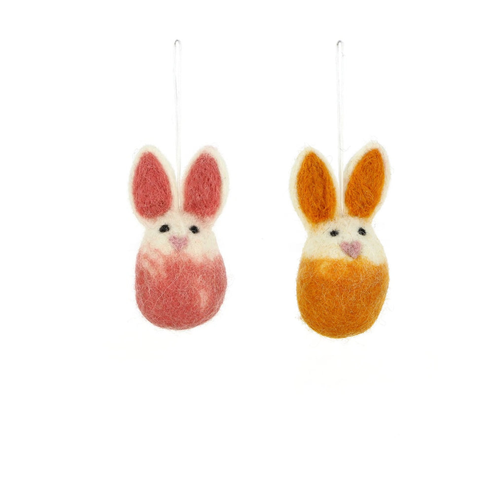 niedliche Hasen Osterhasen (7cm / 2 Stück) aus Filz Ostern Ostereier Osterdeko - Anhänger (Globo Fair Trade)