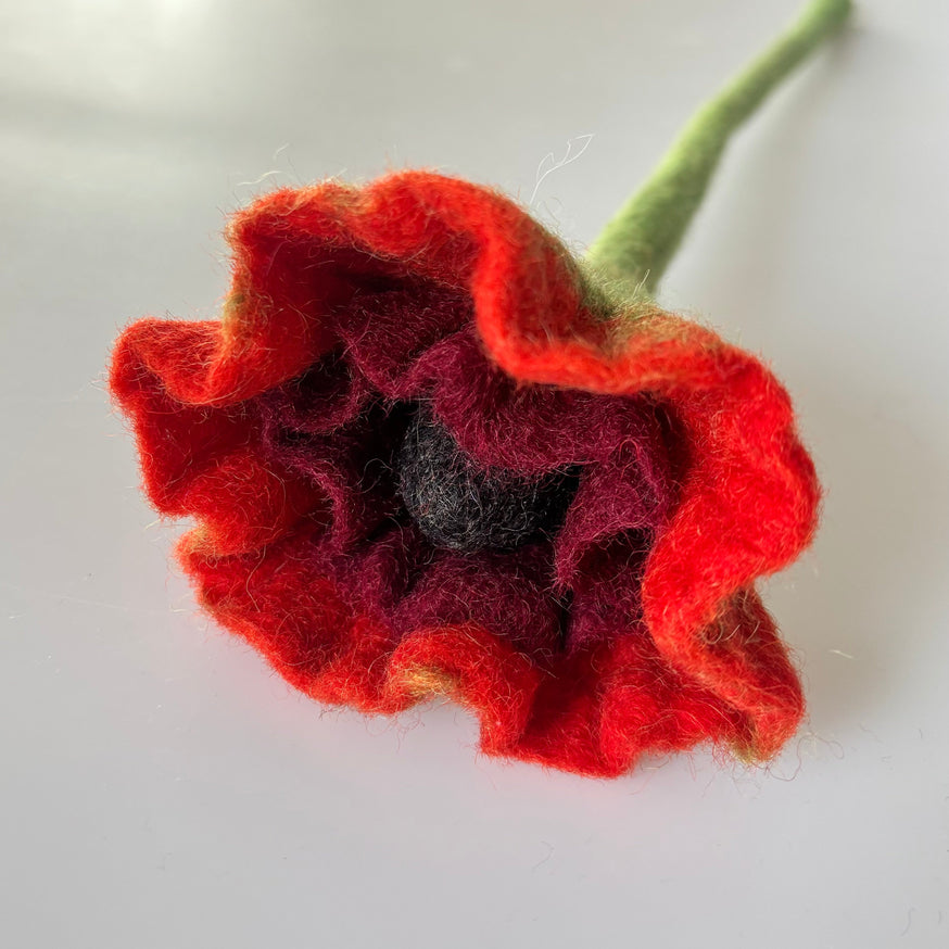 Mohnblume / Klatschmohn in 2 Farben - Filzblume - 35cm (GLOBO Fair Trade Partner)